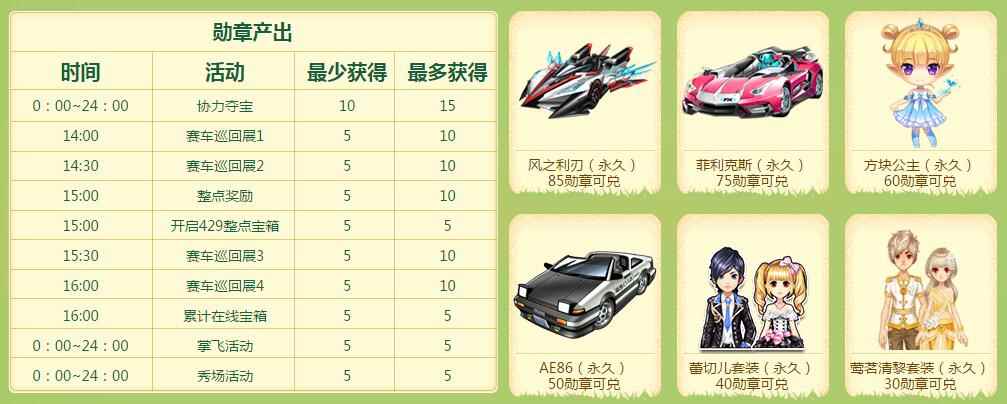 4月29日14:00~16:30,在线即可获永久/天数的展览A车。如没有获得永久A车,将获得5~10个429勋章哦!