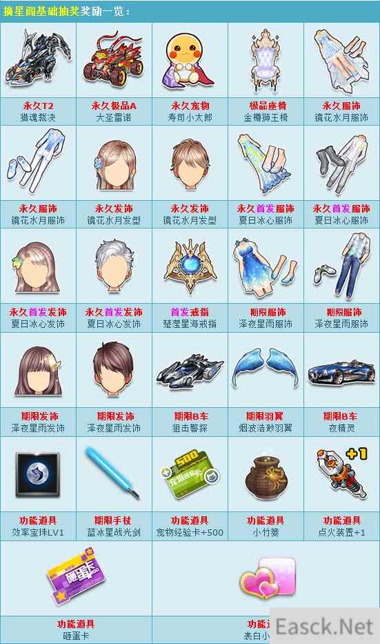 首期摘星奖励一览: