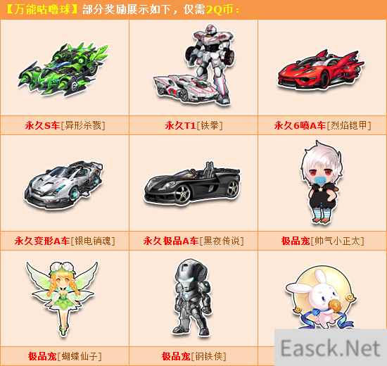 《QQ飞车》万能咕噜球奖励大更新 2Q币抢永久S异形杀戮!10月19日起,万能咕噜球奖励更新,开启即可有机会获得永久S车、永久T1、极品宠物等丰厚奖励。下面一起来看看吧。