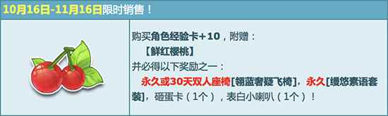 0.1Q币抢永久双人座椅【翎蓝奢疑飞椅】!活动期间,凡购买【角色经验卡+10】将附赠鲜红樱桃,开启即可有机会获得永久套装等丰厚奖励。下面一起来看看吧。