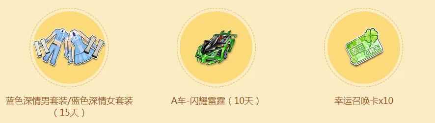 11月3日(周六)15:00整点在线,可获得:蓝色深情男套装/蓝色深情女套装(15天)+幸运召唤卡×5
