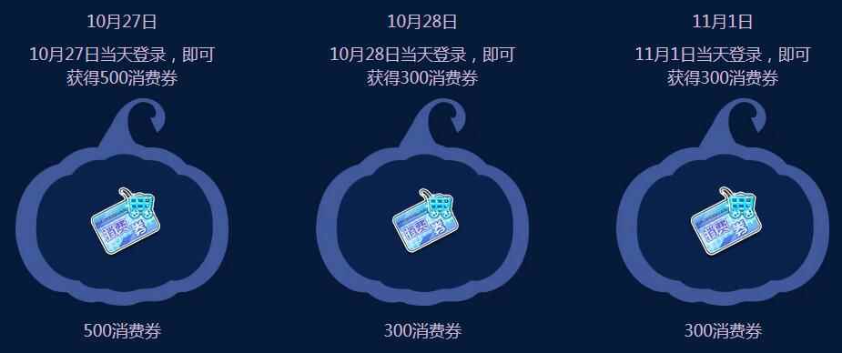 10月27日,情侣/伴侣/兄弟/闺蜜同时在线,必得200点券、万圣南瓜戒指。