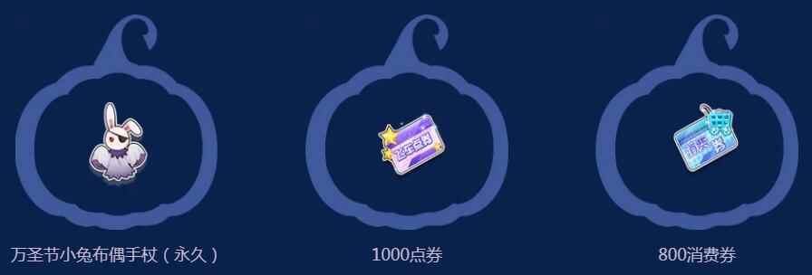 11月1日(周四)20:00整点在线,可获得:万圣节小兔布偶手杖(永久)+1000点券+800消费券