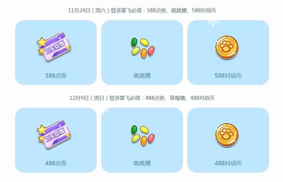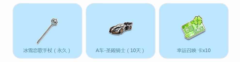 冰雪钥匙 每天在【炫动滑轮模式】下,完成1局比赛,即可获得200点券+1个【冰雪钥匙】