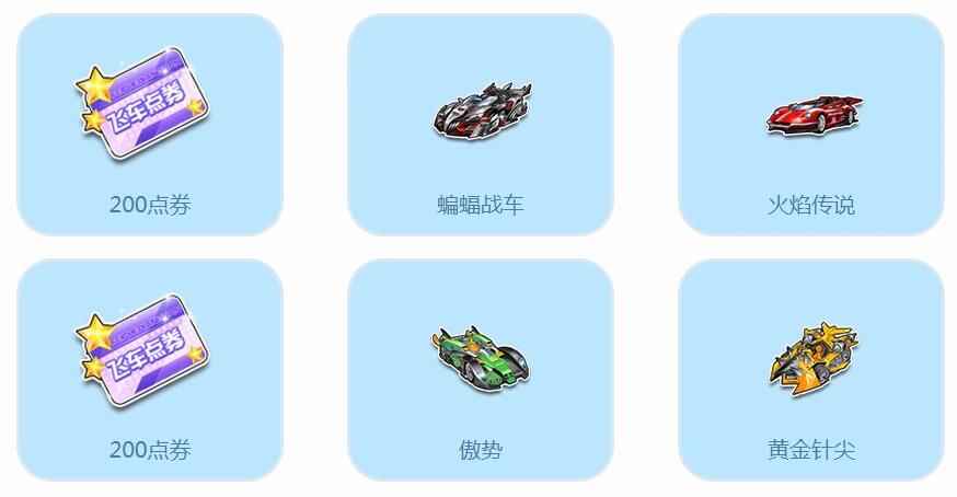 注:只要使用1个【随心钥匙】打开1个【飞驰宝箱】,就有机会获得永久A车【赤焰】。