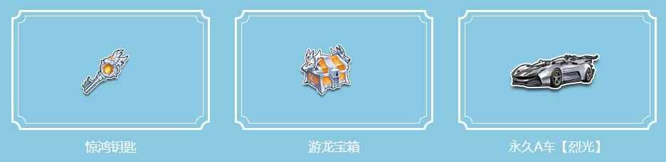 注:只要使用1个【惊鸿钥匙】打开1个【游龙宝箱】,就有机会获得永久A车【烈光】