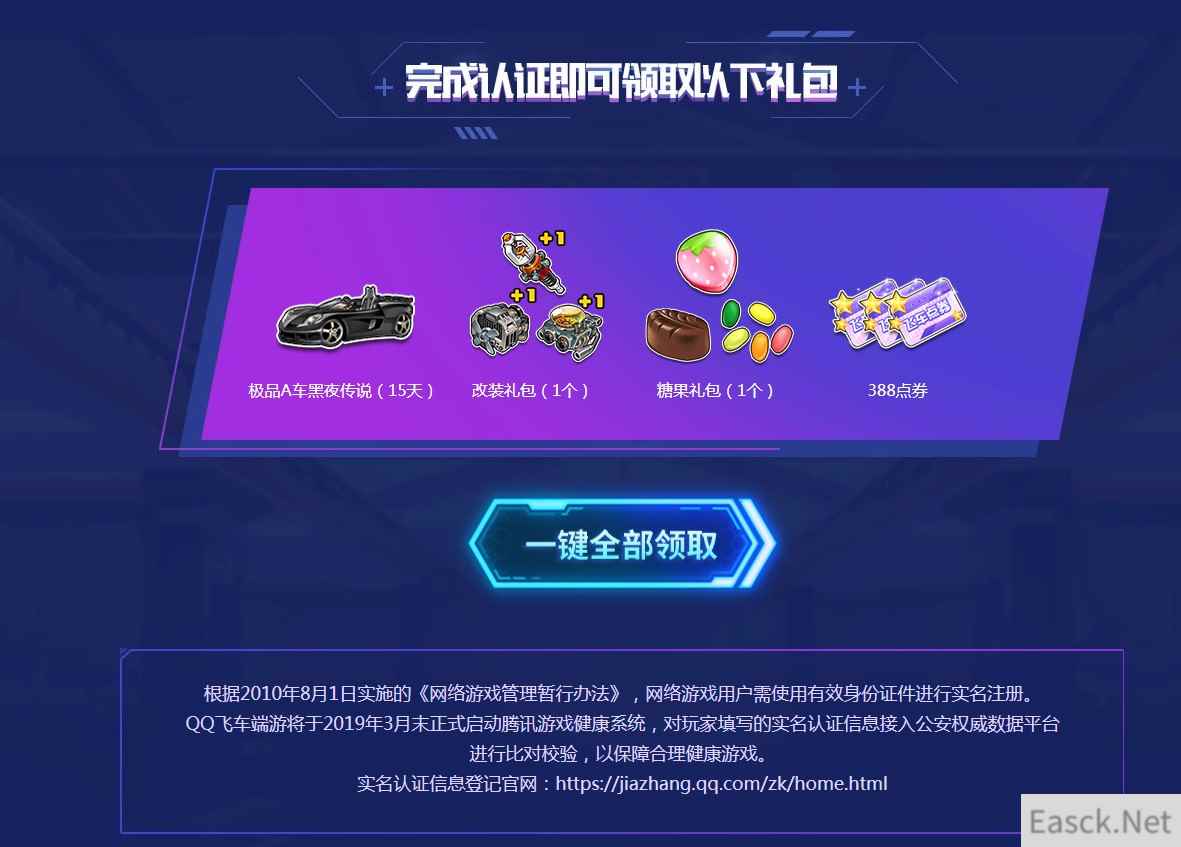 《QQ飞车》车手实名认证领福利活动