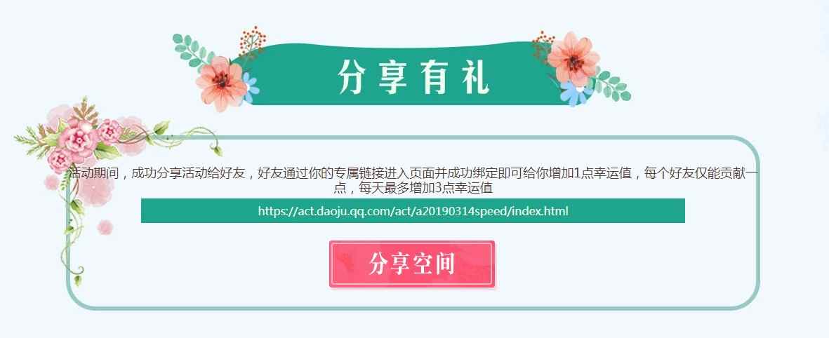 活动地址:https://act.daoju.qq.com/act/a20190314speed/index.html?ADTAG=innercop.speed.SY.advertising_new