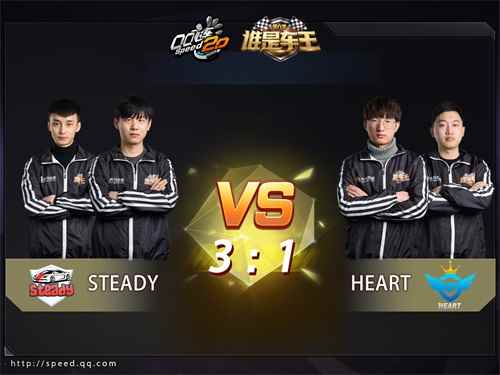 在一片欢呼声中,团队竞速总决赛参赛选手——Steady的张顺、黎绪东和Heart的江章闯、孔云峰闪亮登场,两支队伍都摩拳擦掌,信心十足,谁能笑到最后,便将加冕为王。 团队竞速冠军战 Steady VS Heart 比分