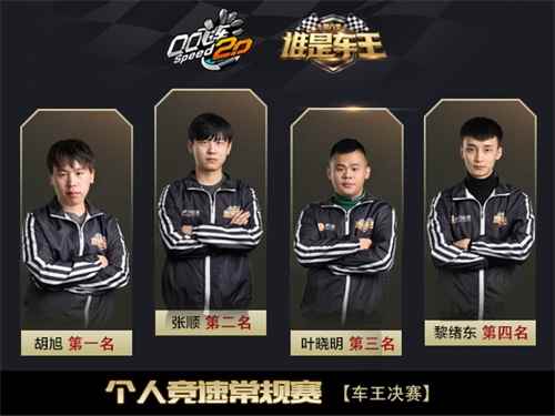 四名选手势均力敌,每场战斗丝毫不让,共进行了十九场激烈交锋。前期胡旭、张顺和黎绪东接连发力,在三人都取得两分的情况下,叶晓明还未曾取得分数。直至胡旭拿到五分后,叶晓明终于破荒,拿到个人第一分。中期小将叶晓明的手感升温,逐渐拿下四小分,而此后的古城秘境,胡旭大战张顺、叶晓明,利用近道弹墙反超领跑,展露实力,成功拿下个人第六分,收得赛点,令人大呼精彩。比赛进行到关键时刻,张顺及时调整心态,在玉龙雪脉和电音之都中,表现出了超强的稳定性,以绝对的零失误领跑连拿两分。在最后的瓦特厂房中,开局四名车手互不相让,一番碰撞后,场上由胡旭后追叶晓明,V型弯处胡旭利用车身外卡内,强势反超锁定胜局,拿到个人第七分,终结比赛。最终胡旭荣膺冠军,张顺获得亚军,叶晓明获得季军,黎绪东取得第四名。