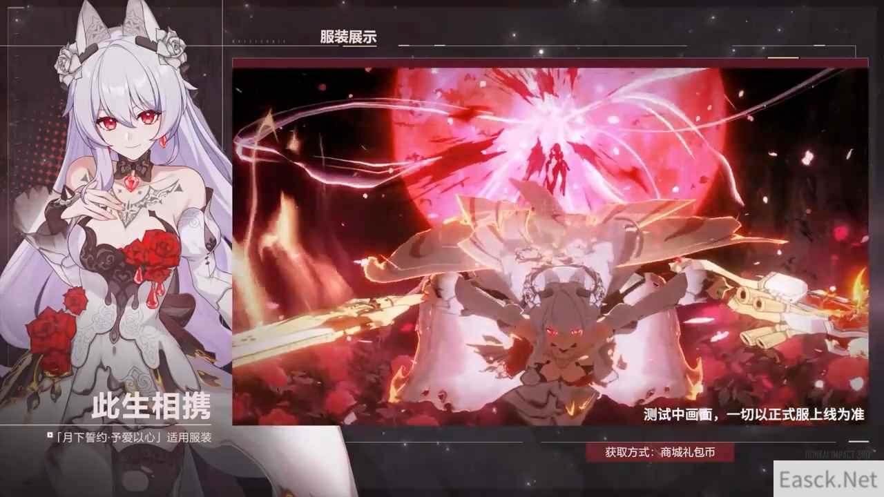 此外,7.5版本还将推出月下「月下誓约·予爱以心」的全新服装「此生相携」,舰长可前往服装商场使用礼包币获取该套服装。经典的纯白薄纱搭配红色蔷薇,纱裙边沿点缀的点燃效果更添破碎,而藏于左手无名指上的戒指,则轻轻诉说了仲夏月夜下的永恒承诺;