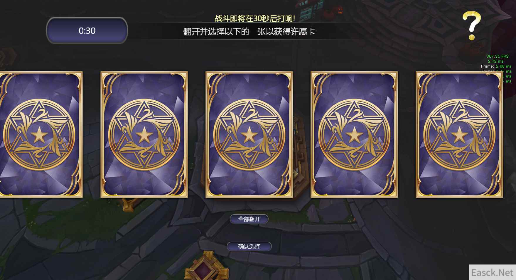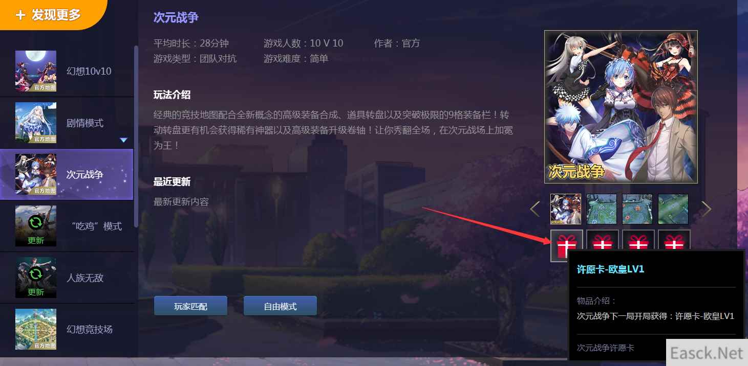 游戏大厅的地图选择界面可查看上局获得的许愿卡