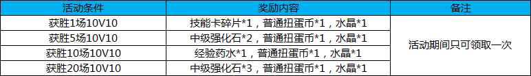 活动规则:累计在10V10模式中获得相应胜场即可获得活动奖励!
