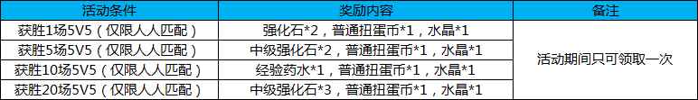 活动规则:累计在5V5模式中获得胜场达到相应活动内容,即可获得活动奖励。