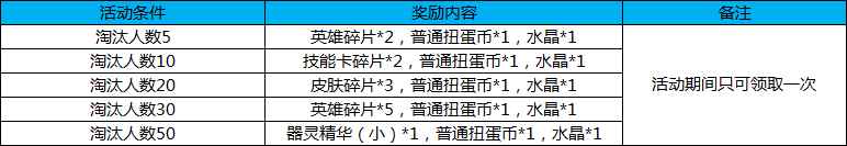 活动规则:累计在枪战求生模式中淘汰人数达到活动内容,即可获得活动奖励