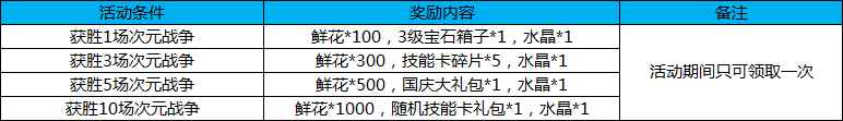 活动规则:累计在次元战争模式中获得相应胜场即可获得活动奖励!