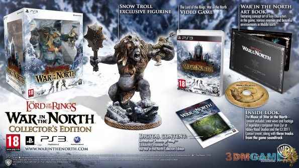 Warner Bros. Interactive Entertainment日前公布了《指环王:北方战争》收藏版,该收藏版目前仅对欧洲玩家开放。 收藏版包括: - 雪巨魔手办 - 《北方战争》艺术原画 - 游戏原声大碟 - 收藏版独占挑战地图 - 游戏CD
