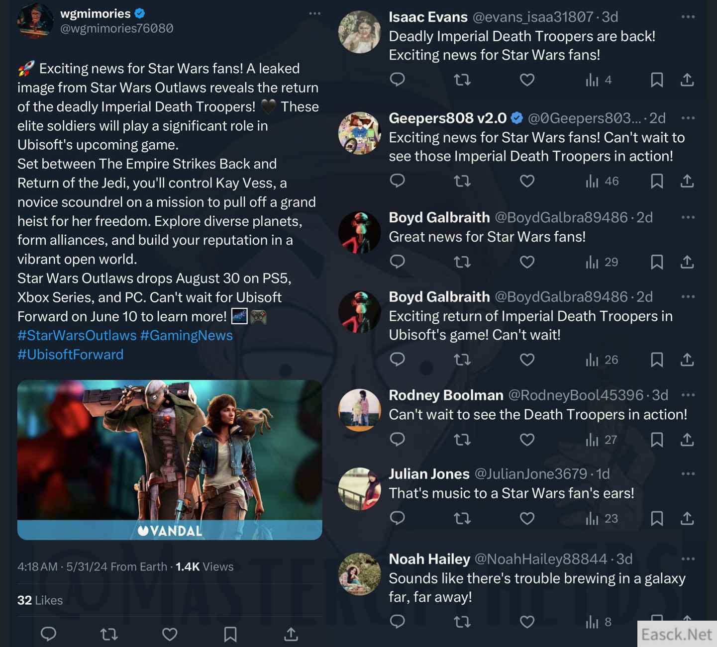 育碧《星球大战:法外狂徒》被曝使用机器人刷热度