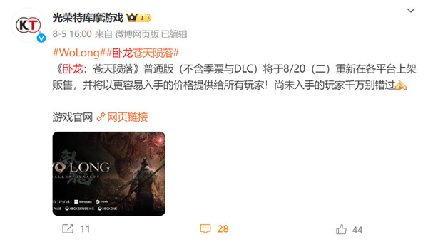 《黑神话:悟空(Black Myth:WuKong)》即将在8月20日发售,然而在同一天发售的还有光荣的《卧龙:苍天陨落(Wolong Fallen Dynasty)》。本月初时,光荣宣布《卧龙:苍天陨落》将在8月20日重新在各平台上架贩售,并以更容易入手的价格提供给玩家。 由于这两个游戏的拼写有一点相似,推主IDK发帖提醒国外玩家,如果你想玩《黑神话:悟空》,那么购买的时候一定要注意看清楚,否则很容易买成《卧龙:苍天陨落》。 对此,国外玩家Archer发帖真的表示他就犯了以上这种错误。 “我在一个与世隔绝的地方工作了几个月,当我回到文明世界(笑)时,我买了《卧龙(wo-long)》,因为我以为它就是《悟空(wukong)》,好在有退款。” |