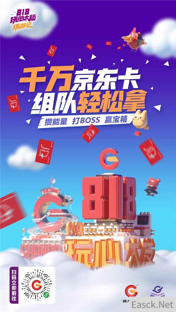 同时,盛大游戏还专门推出了一款名为“818玩心大陆环游记”的微信小程序助力网游节。玩家们每日都可通过探索《冒险岛》、《彩虹岛》、《龙之谷》等七座游戏主题城堡获得宝箱。打开宝箱有机会获得千万京东卡以及数码、周边奖励,更有LBS地图玩法“BOSS遭遇战”,组队赢取超级宝箱。