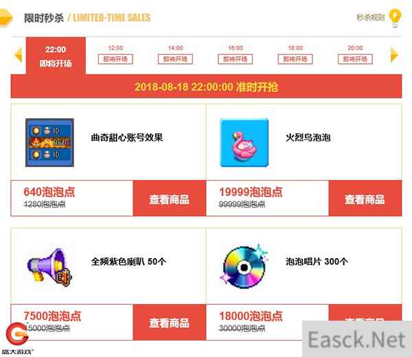 当活动开启时,每个时段都会更新一波道具,《泡泡堂》火烈鸟泡泡、《龙之谷》透视服装、《冒险岛》白金宿命剪刀等人气道具的价格低到让人目瞪口呆,玩家们皆可在自己绑定的游戏中进行秒杀,并且拥有“免单秒杀券”的玩家还可以进行免费的道具秒杀。“限时秒杀”玩的就是心跳,拼的就是手速,在这里建议各位玩家看好目标后立刻定好闹钟,下手迟了可是会后悔的哦。