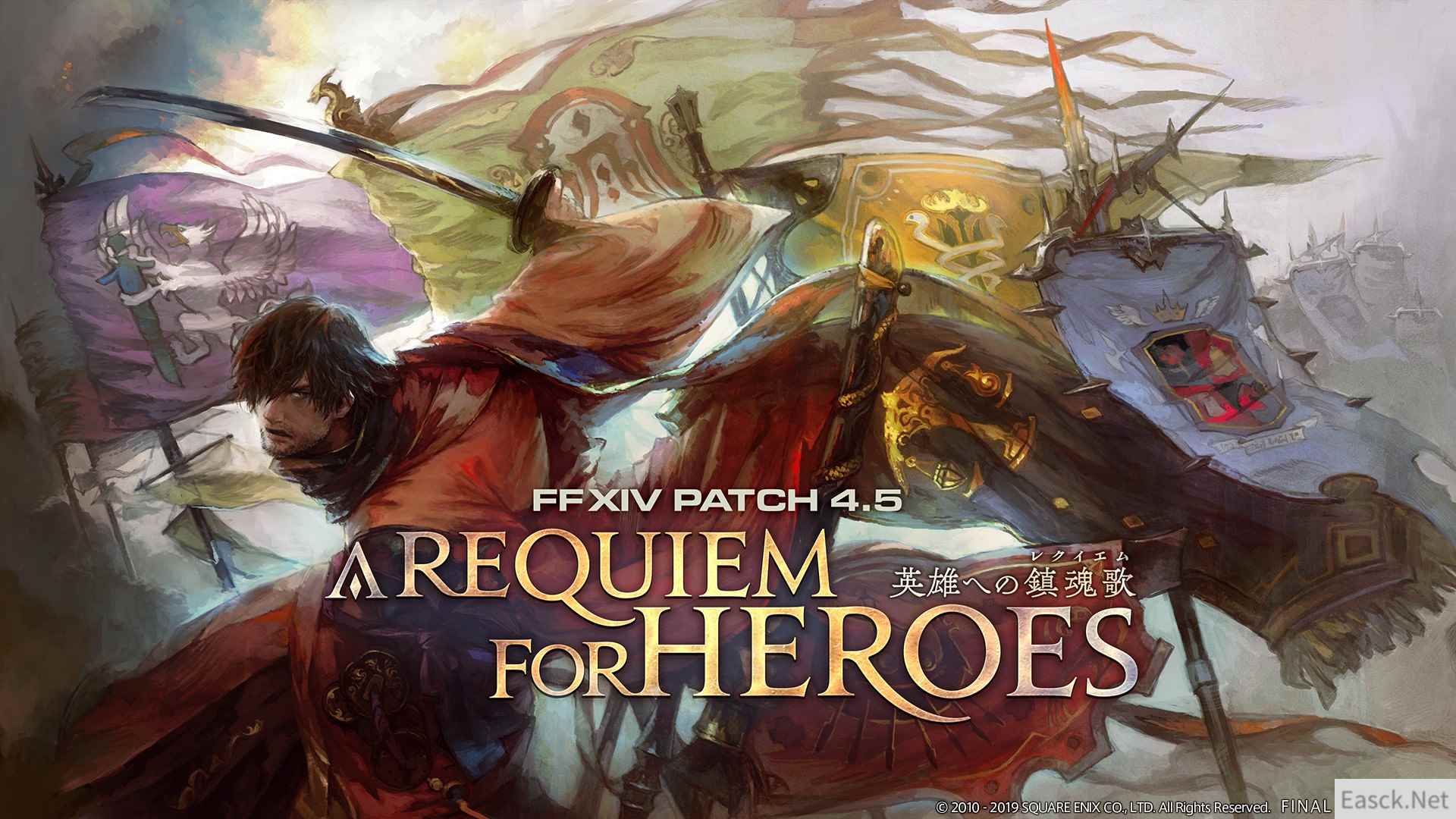 ·4.5版本《最终幻想14:致英雄的镇魂歌》是预定2019年夏上线的全新5.0资料片《最终幻想14:漆黑的反逆者》之前的最后一个大版本号,其故事会将玩家们导向全新5.0,在这个版本中将会解释玩家为何会从光之战士演化为暗之战士,而玩家期待已久的新职业《青魔道士》也将一周后实装上线。 ·4.5《致英雄的镇魂歌》主要更新内容: ·新的主线故事《致英雄的镇魂歌》启动。
