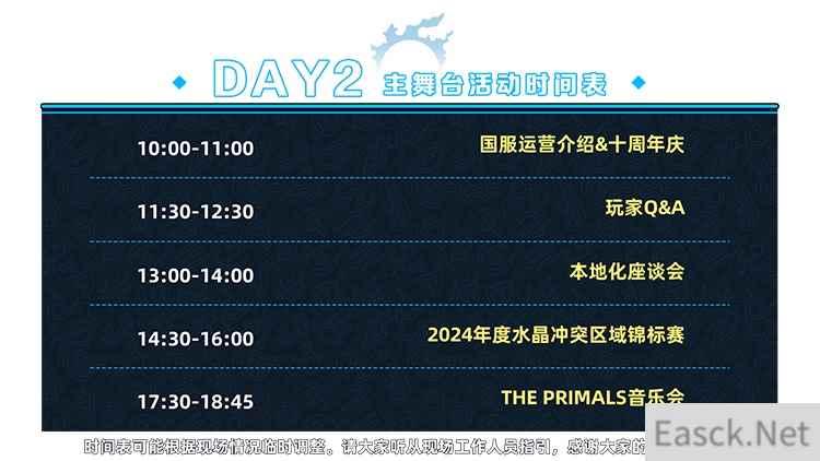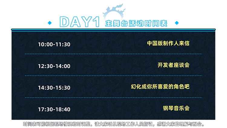 第二日8月4日开场节目将由国服制作人丝瓜卡夫卡进行国服运营介绍暨国服十周年庆。一起共祝国服十周年生日快乐!