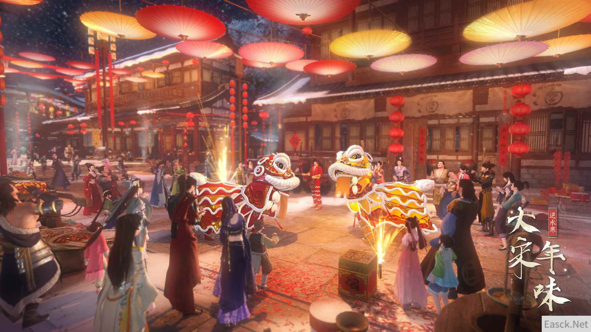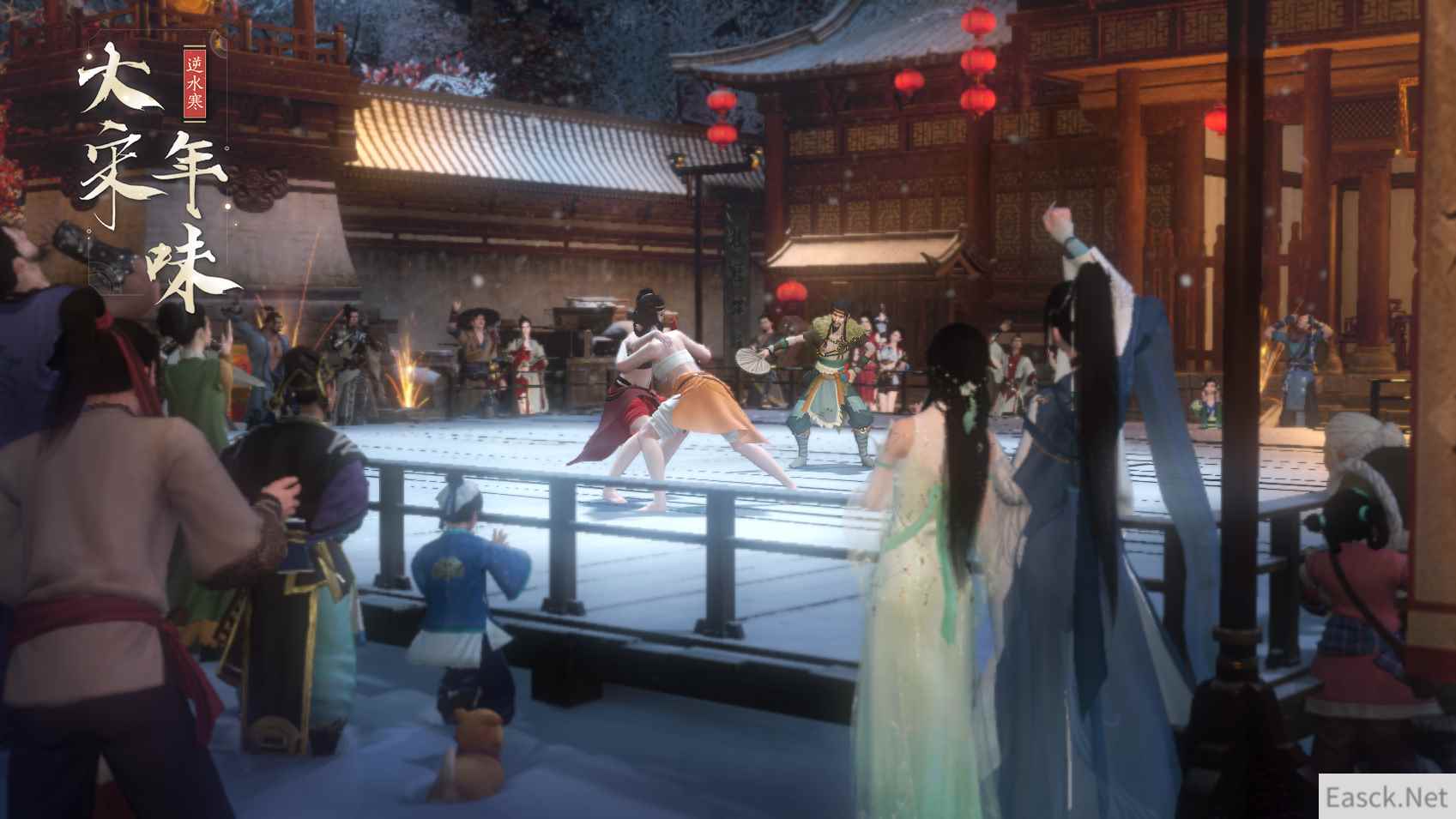 在《逆水寒》严格复刻的宋朝年节中,玩家走上汴京街头,会遇到新年舞狮、关扑摊位、女子相扑、大象游行、皇城百官朝会……老祖宗最地道的年俗活动一个都不会少。在惊叹浓郁年味的同时,你会更加惊奇的发现:自己什么都没干,口袋里已经热情的大宋子民主动塞满红包了!