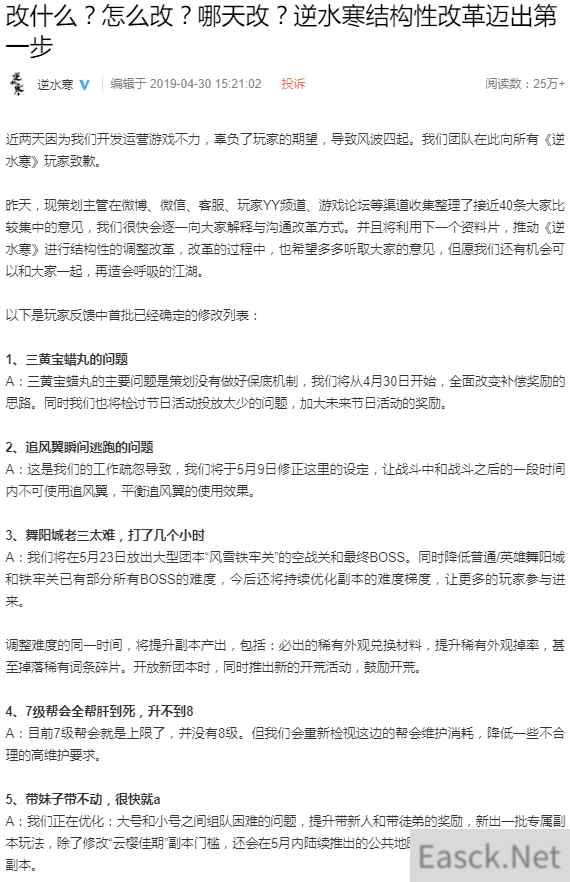 而《逆水寒》官方也终于有了自己的行动,今天(4月30日)下午发布了一篇公告,表示接下来《逆水寒》将进行“结构性改革”。