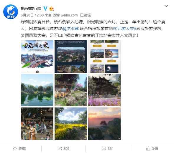 这不是逆水寒第一次因为场景引起热议了。此前,携程旅游还特意邀请逆水寒,一起联合发起了#0元游大宋#的线上旅游,让见多了钢筋水泥的现代人,足不出户,切切实实地体验大宋风光。