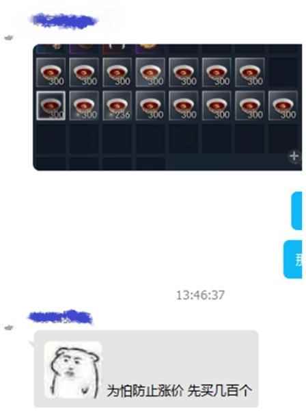 平日里庙会里的回血药总是有的卖,但在诸神之战前夕,有玩家发现:服务器的红药被大量扫货,庙会中的红药更是出现了被抢售一空的迹象。回血药【王八汤】就成为了玩家之间的抢手货,都担心在诸神之战阶段难以买到。