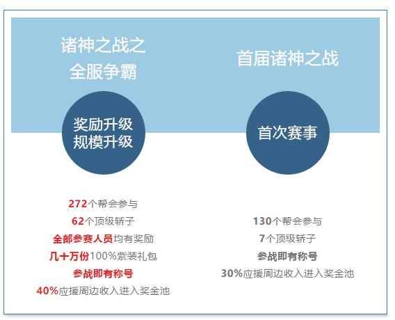 或许官方被玩家的热情与信任打动了,他们主动将赛事奖金分成又拔高了一截。在首届跨服联赛中的奖金官方采取了国际惯例的奖金比例——30%,即:官方投入的基本奖金+赛事应援周边收入的30%滚入奖金池,上次的总奖金池高达470万元人民币,冠军帮会也赢得了1400万+的元宝收入,折合人民币就是140万元!