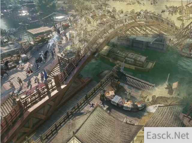 原来在《历史那些事》中,对于宋朝场景的还原部分使用了《逆水寒》游戏内的实录场景,比如在介绍名画清明上河图中,就使用了《逆水寒》主城汴京上的虹桥场景。