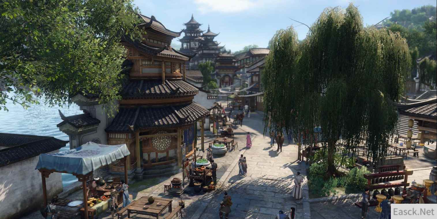 比如,在以“平民化、世俗化、人文化”为标志的宋朝,城市规划打破了“坊”“市”界限,宵禁制度也应和着宋人日益发展的娱乐需求而取消。所以在《逆水寒》中,玩家能看到临街而市的河坊街、能看到昼夜开张的甜水巷。