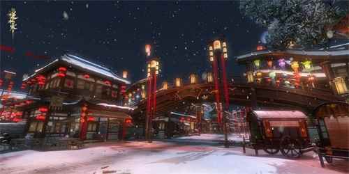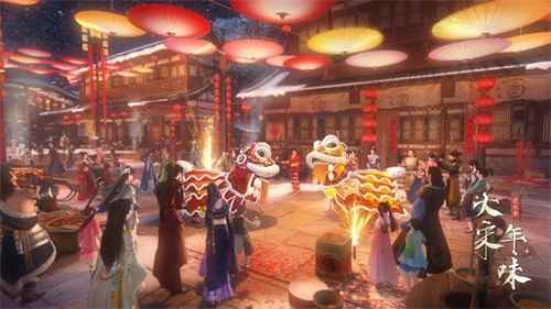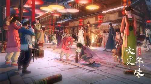 在游戏中,随处可以见到灯笼、桃符、门神、旗幌等年味十足的装饰;在漫长的一年过去后,NPC们也都停下了自己急急忙忙工作的脚步,开始慢悠悠的洒扫庭院,互相拜年
