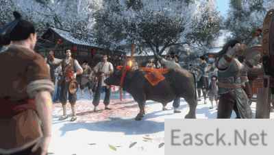杭州城外的村民欢欢喜喜的用桑木和黄土塑成牛的形状,鞭打着“春牛”祈求来年的五谷丰登。你若是不小心撞到了哪位出门置办年货的NPC,说不定还能听他讲一段过年的故事。
