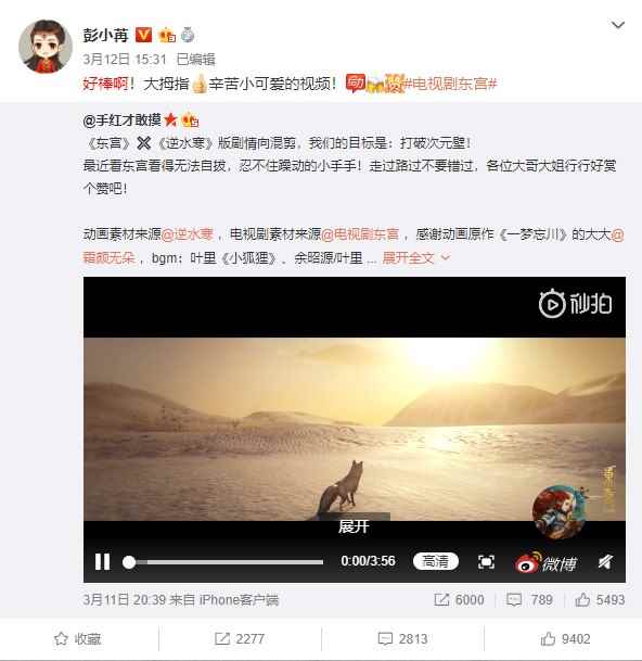 《东宫》、《招摇》、《白蛇缘起》、《知否》……逆水寒的有才玩家们利用动画编辑器大宋映画的功能,直接或翻拍片段,或重演剧情,更有玩家自己自导自演了一个大结局,同人作品做得比电视剧官方都精致,引的主演们纷纷点赞。甚至还给玩家送上了签名照以示感谢。