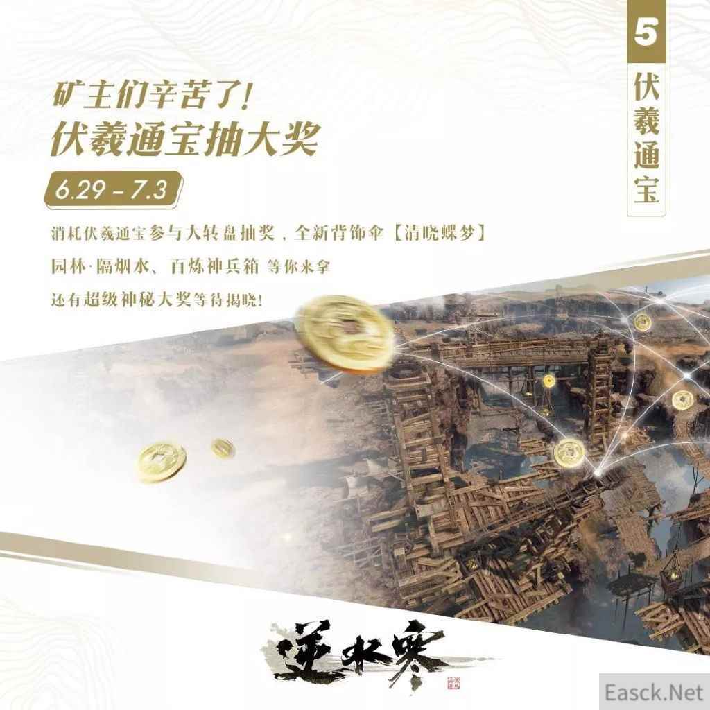 到现在反而主动把梗做进游戏里,不仅仅是“下雨掉血”,包括“玩逆水寒得家里有矿”这个梗,游戏中也开放了伏羲通宝,让玩家们能一边挖矿一边喊“我家真的有矿!”,周年庆的时候伏羲通宝(挖矿得到的流通货币)还可以兑换时装。