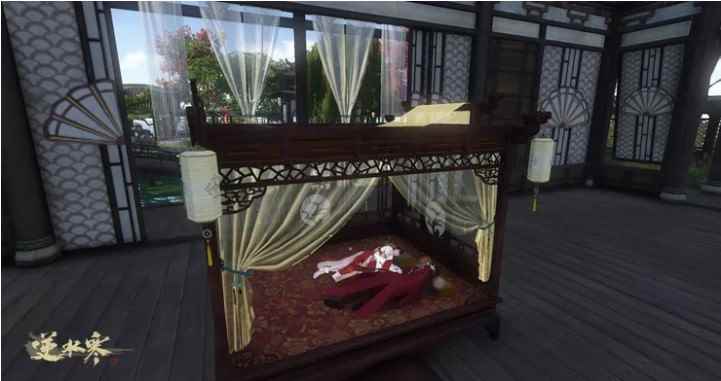 对很多热恋中的情侣来说,每天除了上线日常押镖一条龙,甜甜蜜蜜的在一起,下线的时候也不想分开。对此,逆水寒还推出了双人床的玩法,情侣间可以相互依偎着谁在一起,还能触发甜蜜的梦境奇遇。