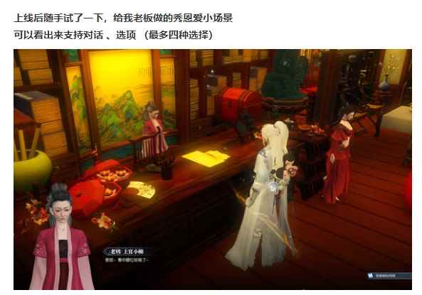 比如说有人利用《逆水寒》新推出的NPC夸夸功能来秀恩爱——