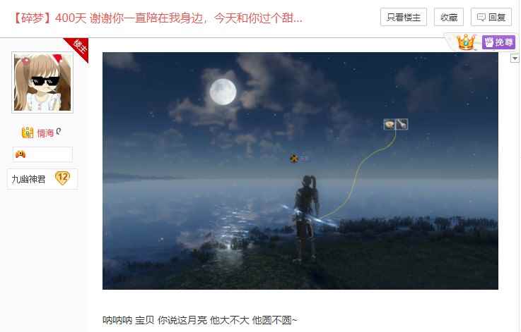 有人连续不断的在贴吧打卡了400天来记录和情缘的江湖故事。