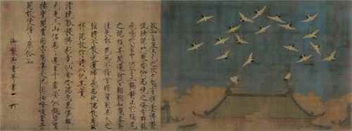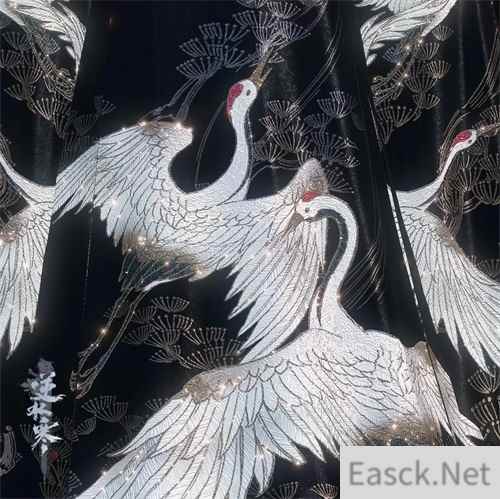 【瑞鹤】系列时装以北宋宋徽宗赵佶所作《瑞鹤图》为灵感,采用宋代宫廷的制衣标准,将天空中如云似雾的鹤群织成了衣裳,气韵非凡。