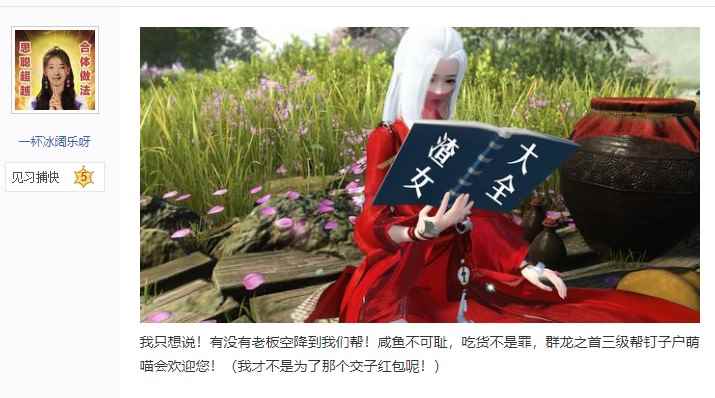 在《逆水寒》官方对外正式公布转服细节之后,官微官博和官方贴吧中涌入了许多安利党,从各种角度把自己的帮会夸得和花儿一样,让吃瓜群众摸不着头脑。究其原因,这两条评论揭开了谜底,原来转服还有红包拿?