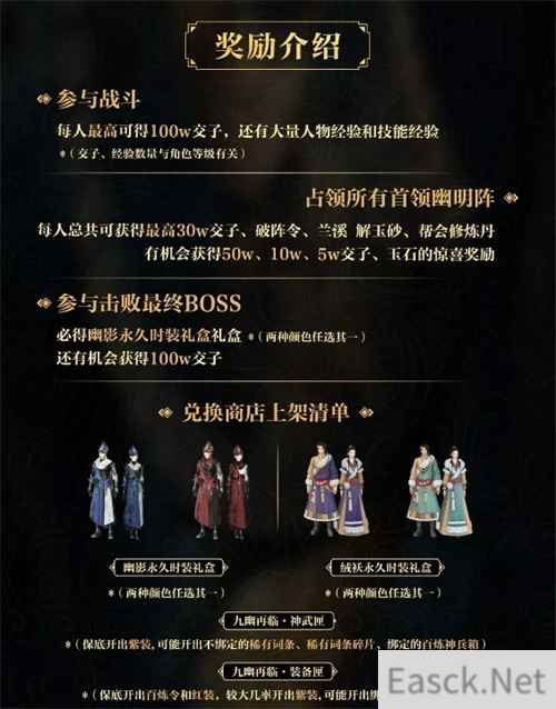 原来是因为这次的奖励真的丰厚了!玩家只要参加战斗就最高可得几百万游戏币,永久时装、紫装、百炼盒子、稀有词条这些平时罕见的奖励拿到手软。如此狂欢式的福利,让逆水寒的玩家都心跳不止,怪不得扬言:再多来点。