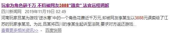 后来逆水寒官方推出了藏宝阁功能,可以通过该平台转移买卖账号角色,李先生就想以38.8万元的价格把该角色转移给吕先生。但李先生说,自己游戏玩久了,一时头昏点错,将金额设置成了3888元。没想到,在网上刚一挂起出售,就被玩家李某龙快速抢到购买权,并且交易成功。