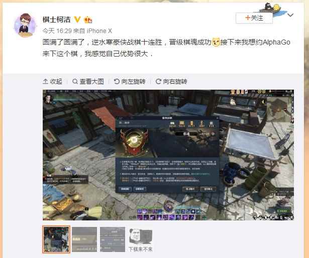 说来说去,其实两人还是互相“看不上”对方玩游戏或者投资游戏的水平。不过这也难怪,两人对游戏都算得上是老手,见面先问候一下对方的游戏水平很正常。就说柯洁吧,看似是个正经下棋的棋士,其实却是个匪夷所思的“游戏之王”:什么竞技卡牌《昆特牌》、MOBA《王者荣耀》、甚至斗地主等等都是高手,或许真像PDD所怼的,柯洁大概真的玩了500多款游戏了……