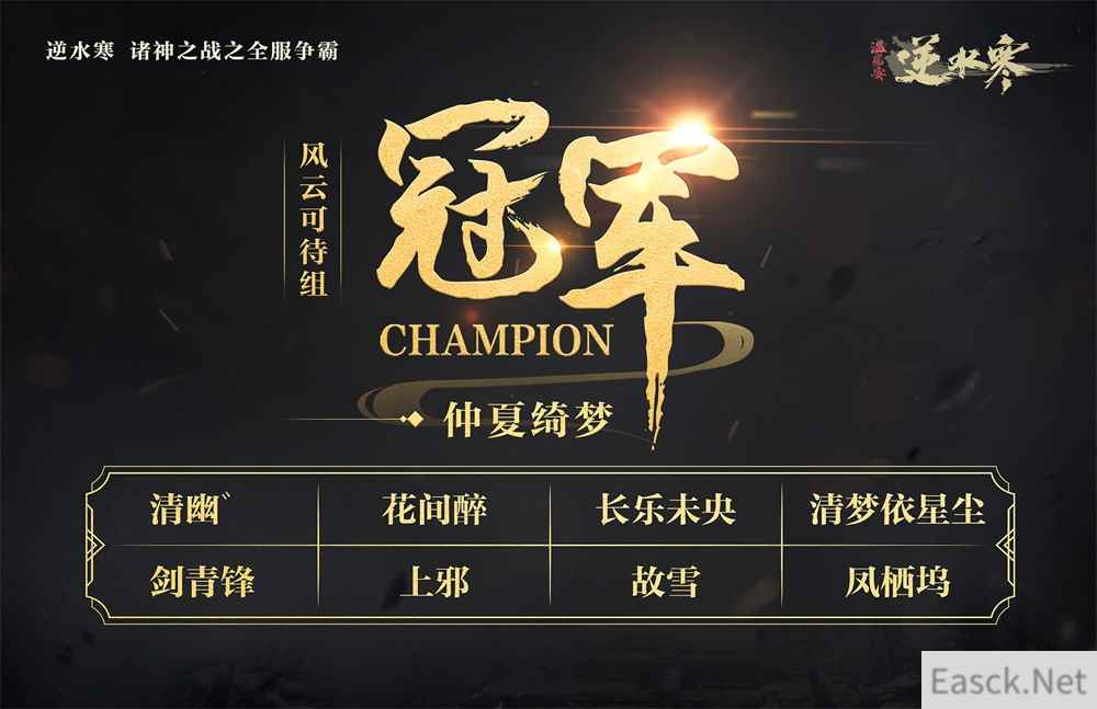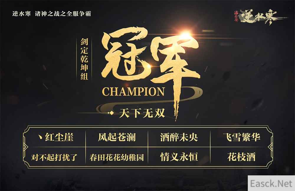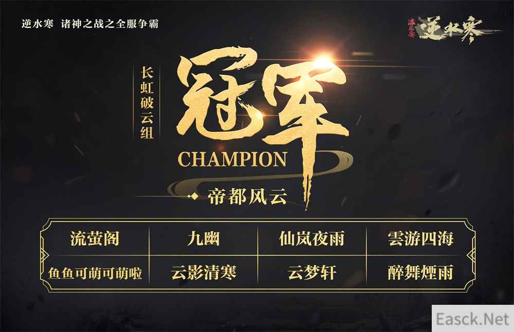截止今日,逆水寒【剑定乾坤】、【长虹破云】、【风云可待】以及【清风初会】四个组别都已经决出了冠军!在这期间,不论是派兵遣将的帮派战术,还是群情激昂的战力提升,亦或是万众一心的团结协作!这一次,逆水寒全部玩家们的激情,造就了这场全民参与的空前盛况!