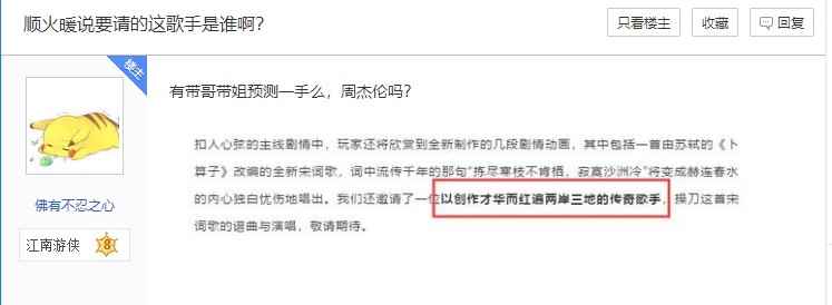 举个简单的例子,在爆料主线剧情的时候,官方顺嘴提了一句:“词中流传千年的那句“拣尽寒枝不肯栖,寂寞沙洲冷”将变成赫连春水的内心独白忧伤地唱出。”