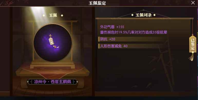 最后是玉佩有隐藏属性,需要鉴定才能完全显示。