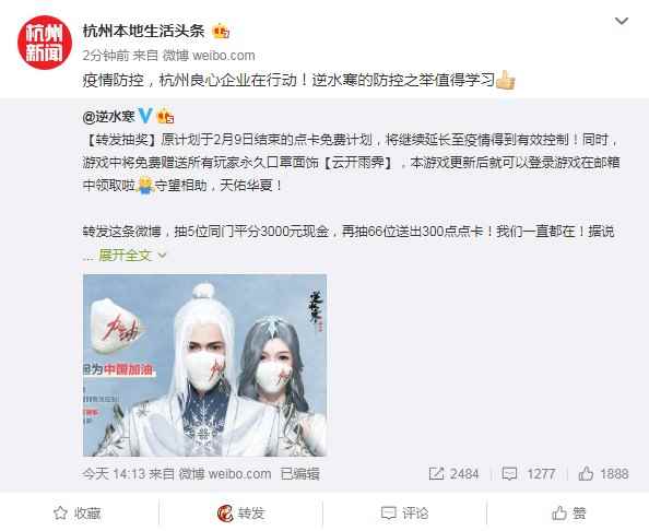 有的人奋斗在抗击疫情的第一线,而在看不见的战线上,也有人们为看疫情防护在默默付诸自己力所能及之事,舍“益”取“义”,《逆水寒》这种为防控工作献力的的善举,让这款武侠游戏,散发出“侠义”精神现代传承的光辉。